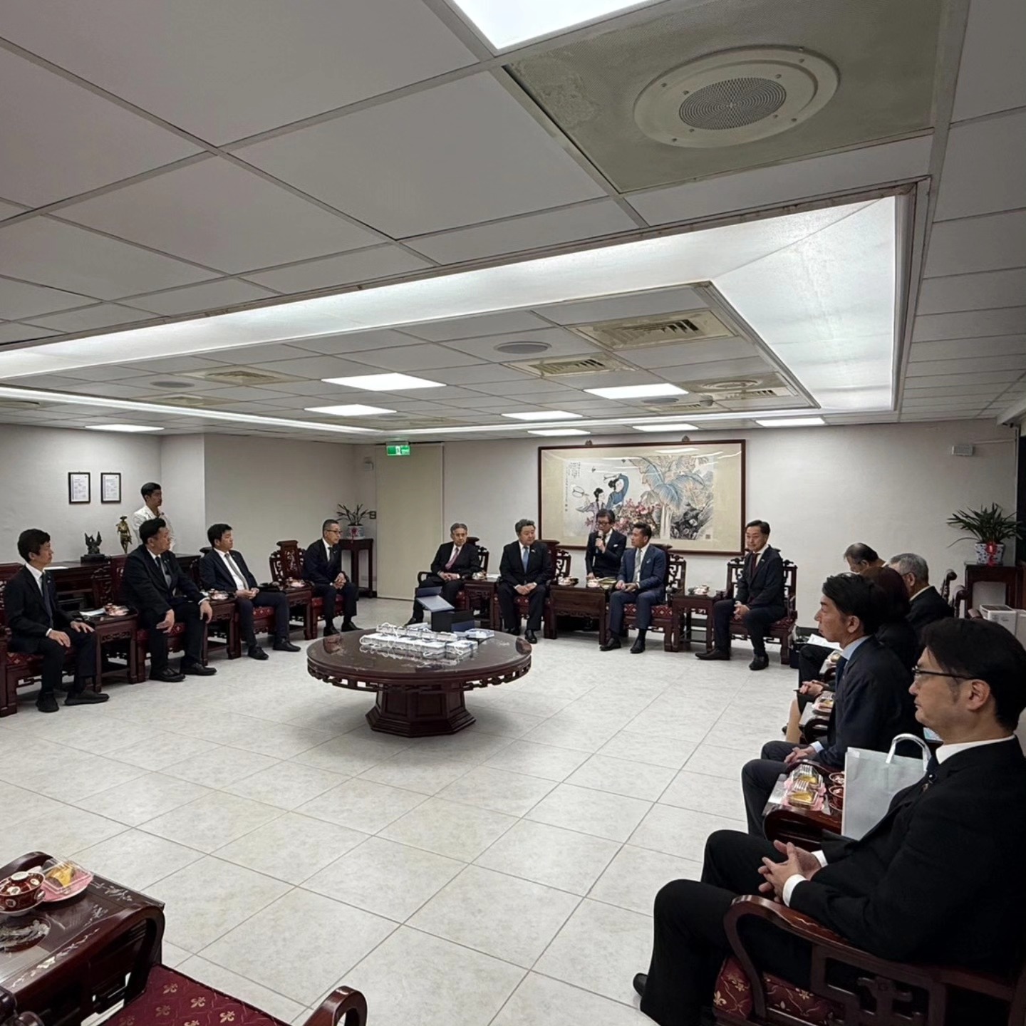 台湾工商企業連合会監事会主席・太子企業グループの許顯榮会長の主催による歓迎会に参加。新光グループの許嫺嫺氏らの財界関係者と立法委員(国会議員)の鍾佳濱(民進党議員)、王鴻薇(国民党議員)も参加させ、日台の経済・産業分野における連携の深さを感じる、有意義な意見交換が出来ました。
